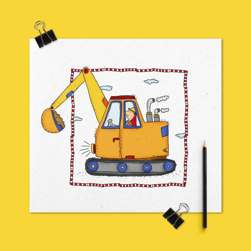 Illustration rundum Bagger, Zug und Feuerwehr
